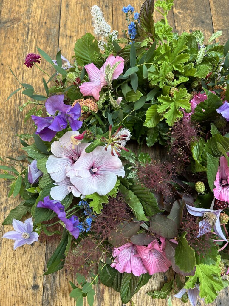 Each sheaf is designed, where possible, with seasonal British Flowers, and locally sourced foliages.