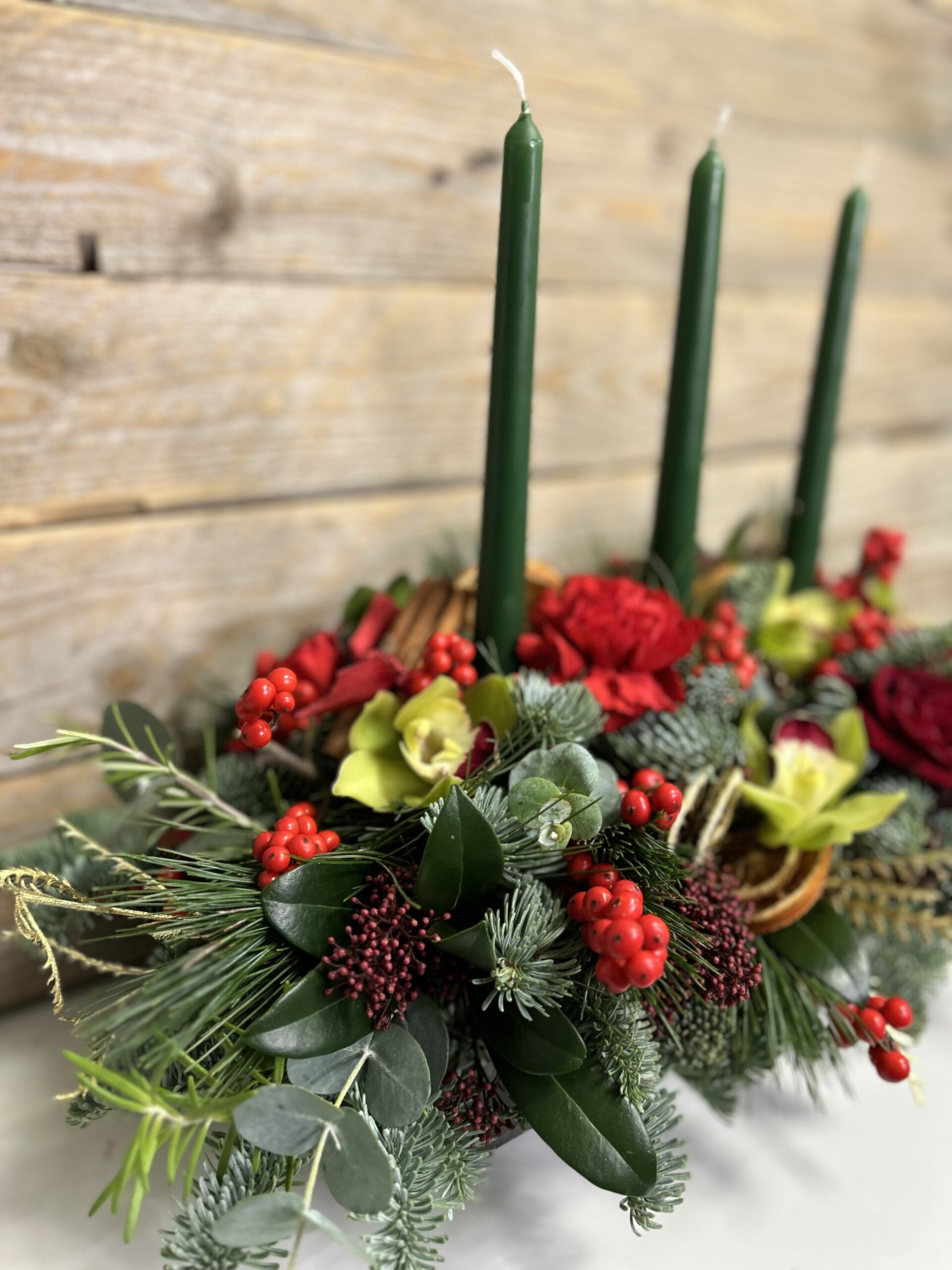 We will guide you, as you make your own beautiful centrepiece for your Christmas table. With a choice of foliages, flowers and accessories, your creation will be your very own.